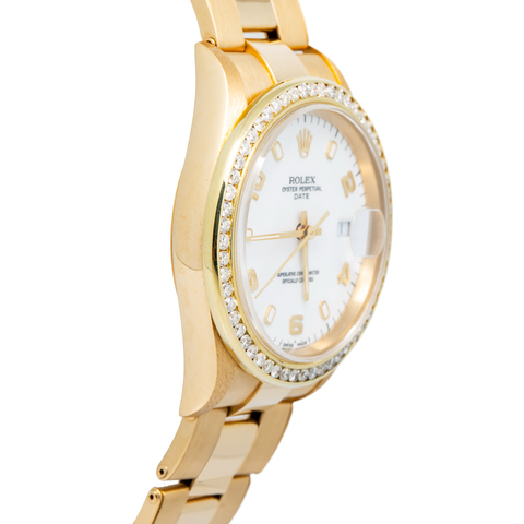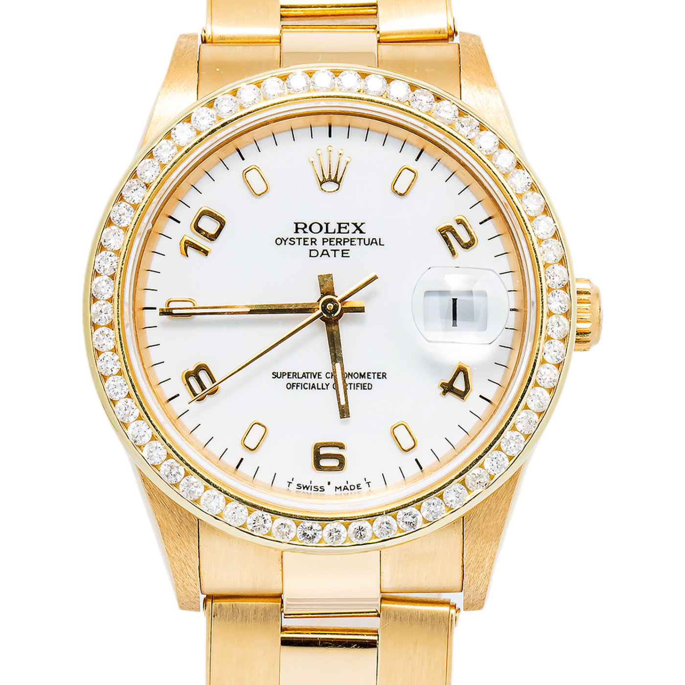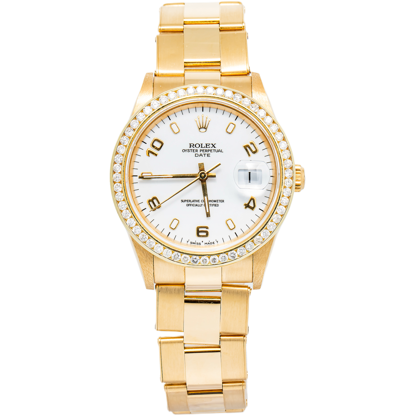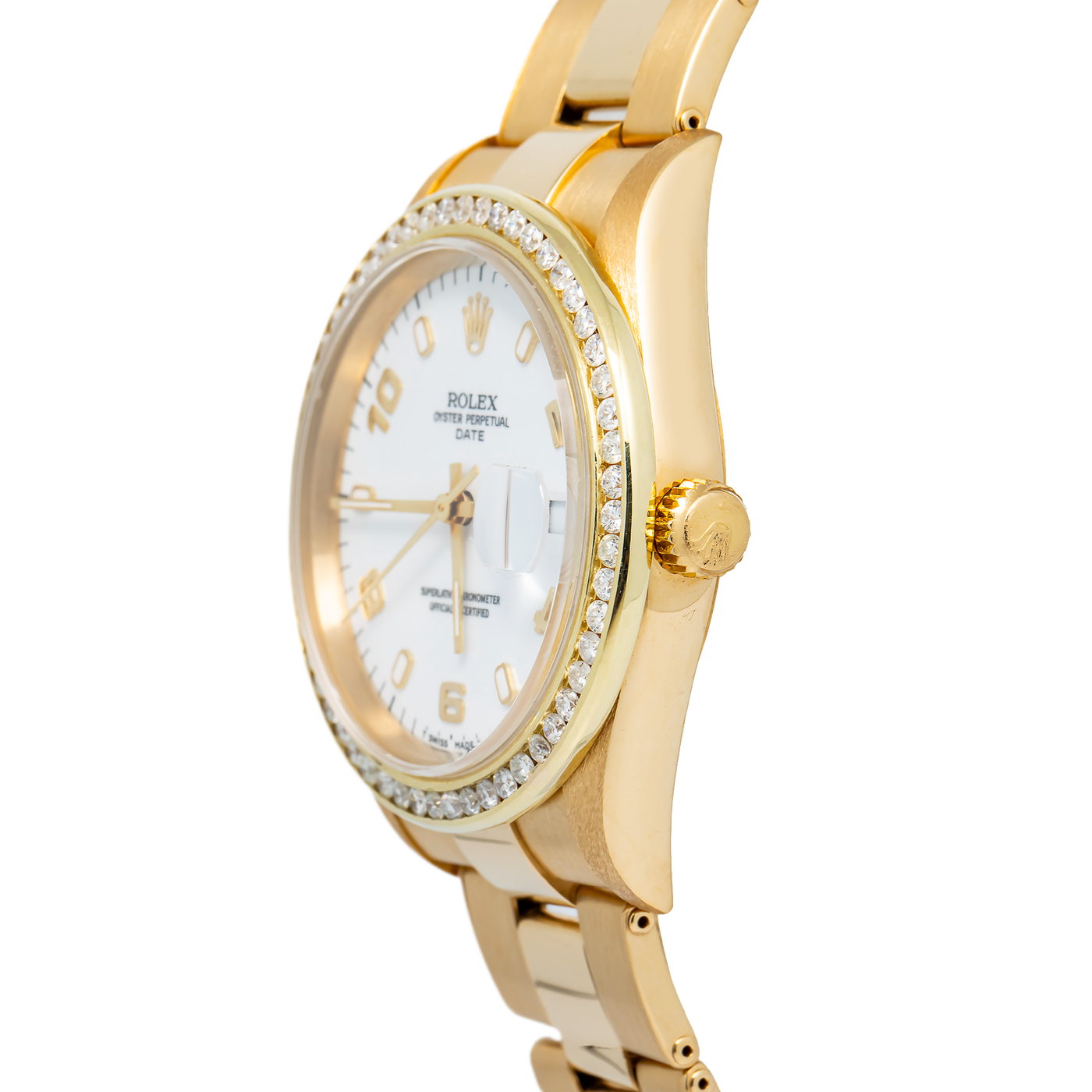 Rolex Oyster Perpetual Date 15238 Aftermarket Diamond 18k YG Auto Watch 34mm Sale
