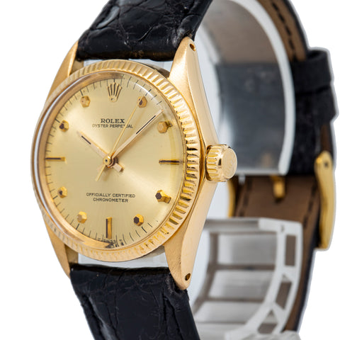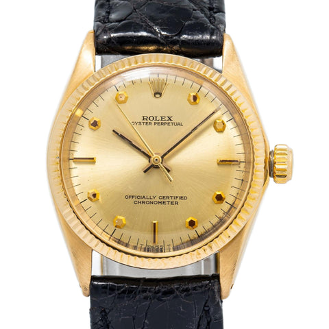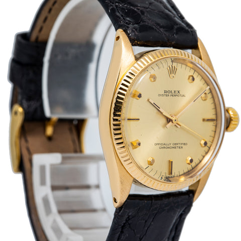 Rolex Oyster Perpetual 6551 18K YG Champagne PINBALL Dial Auto Unisex Watch 31mm Sale