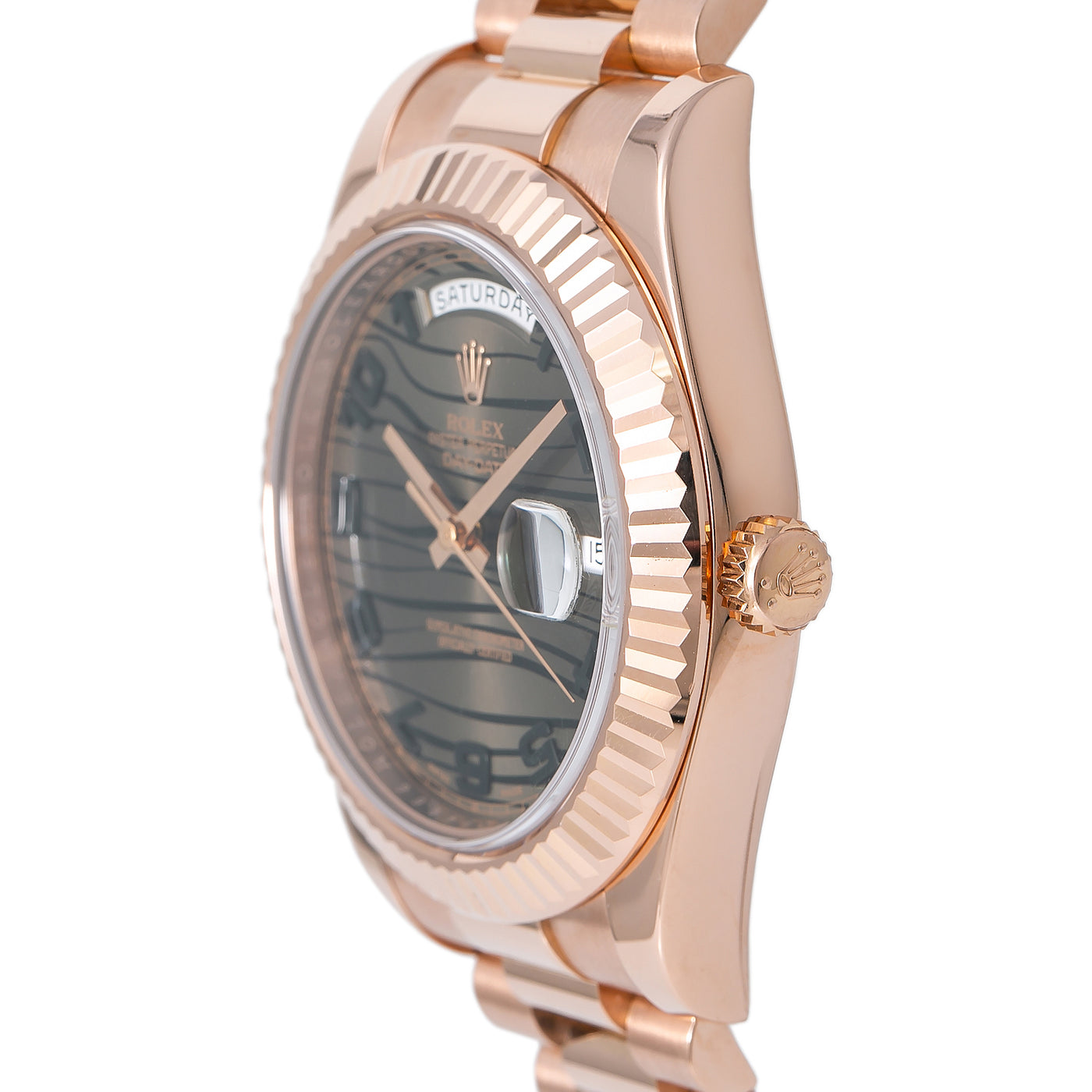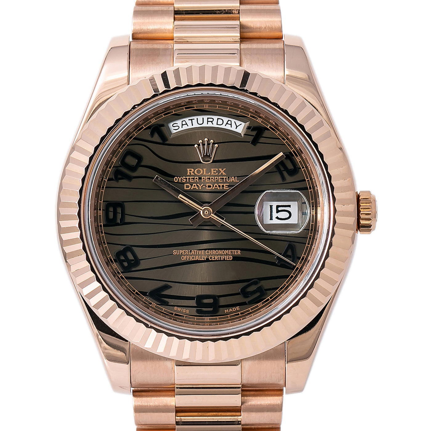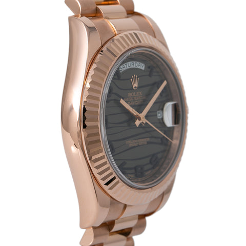 Rolex Day Date II 218235 2009 B/P 18k Rose Gold Chocolate Wave Dial Watch 41mm Sale