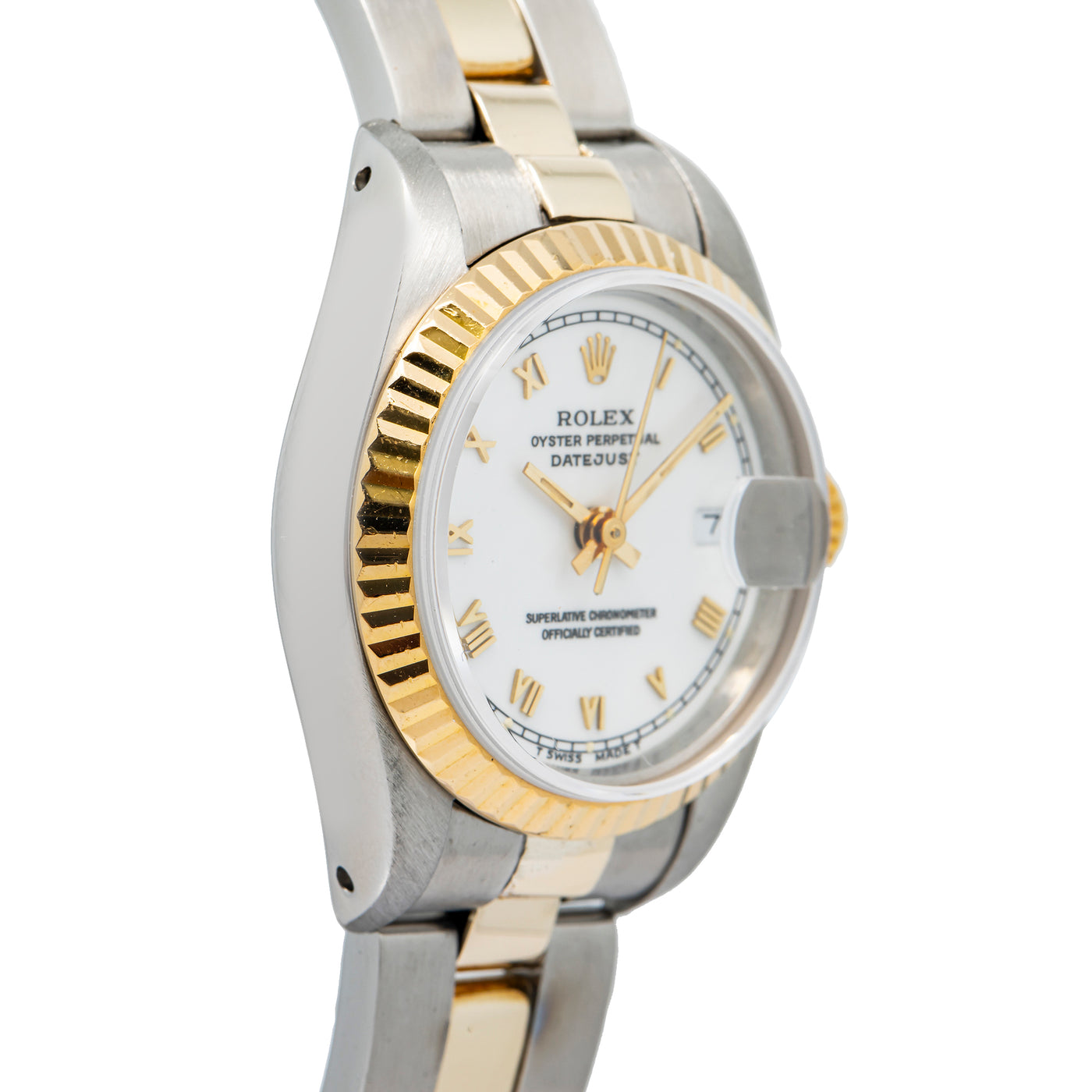 Rolex DateJust 69173 Oyster 18K Two Tone Yellow Gold White Dial Auto Ladies 26mm Sale