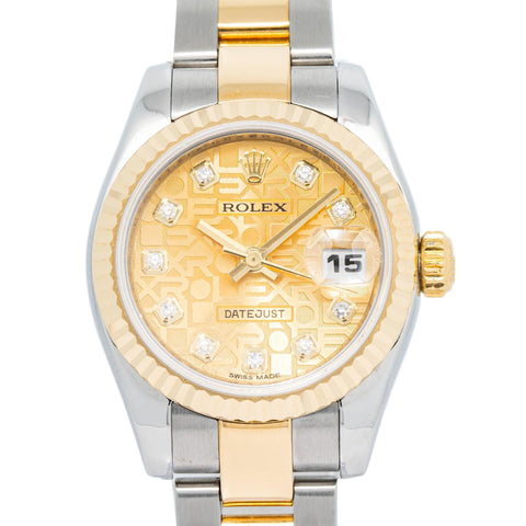 Rolex Datejust 179173 18k Two Tone Factory Diamond Anniversary Dial Lady 26mm