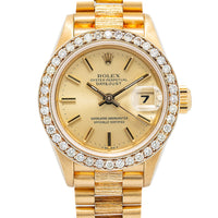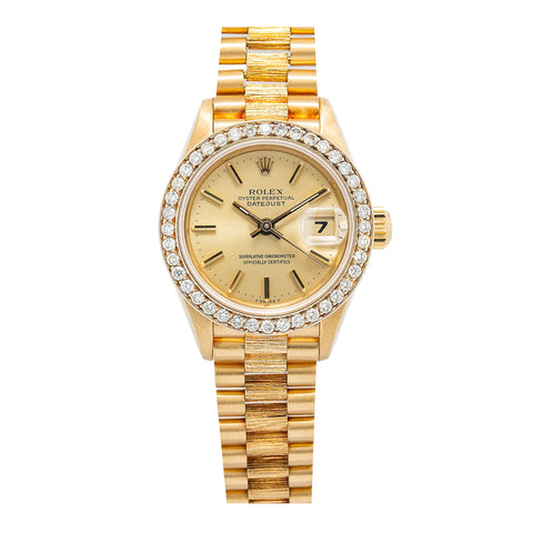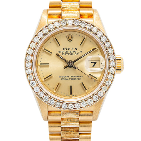 Rolex Datejust President Bark 69278 Diamond Bezel Champagne Dial Ladies 26mm