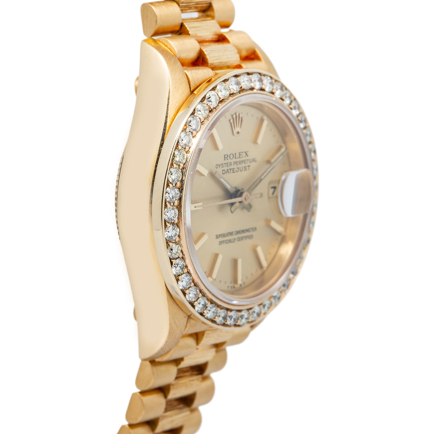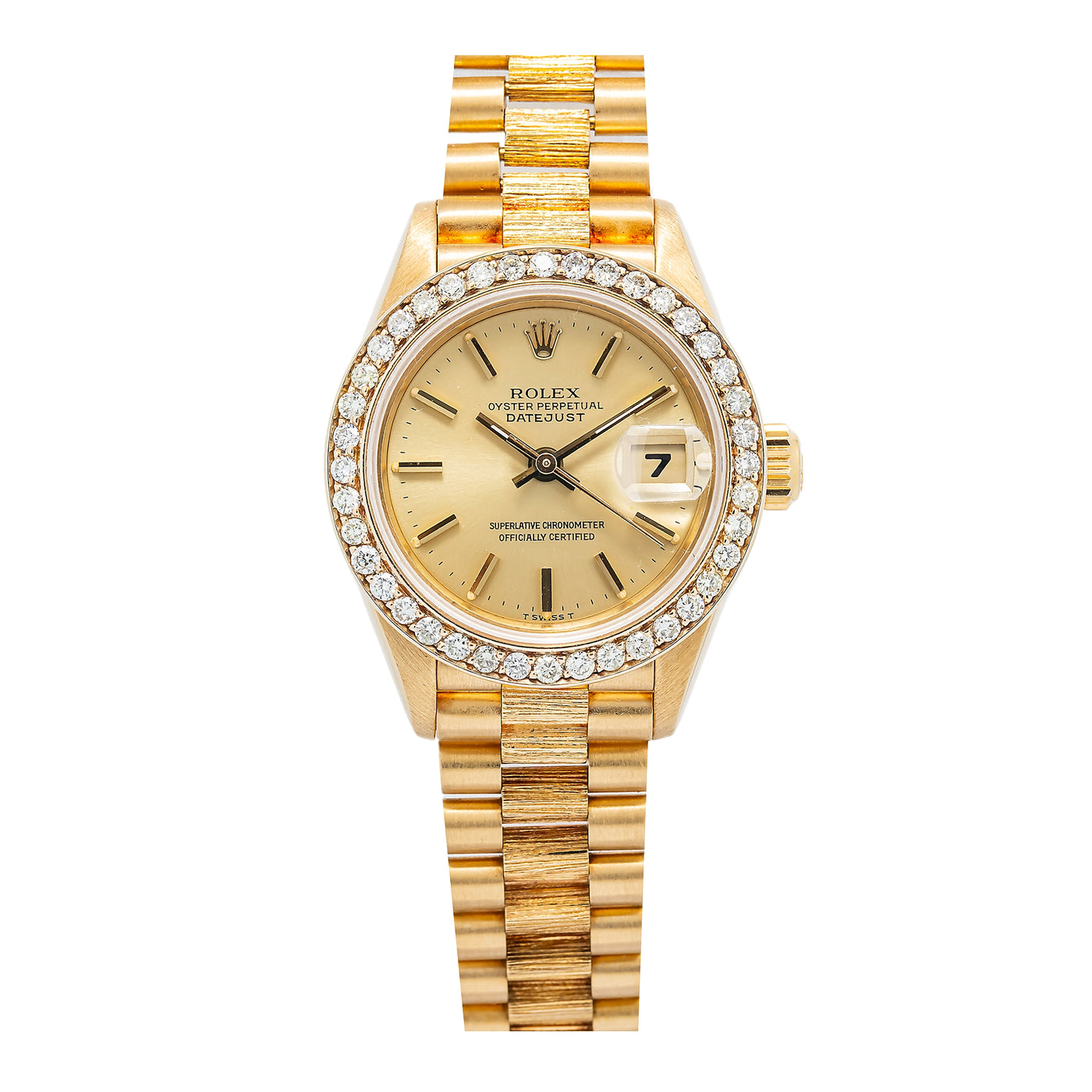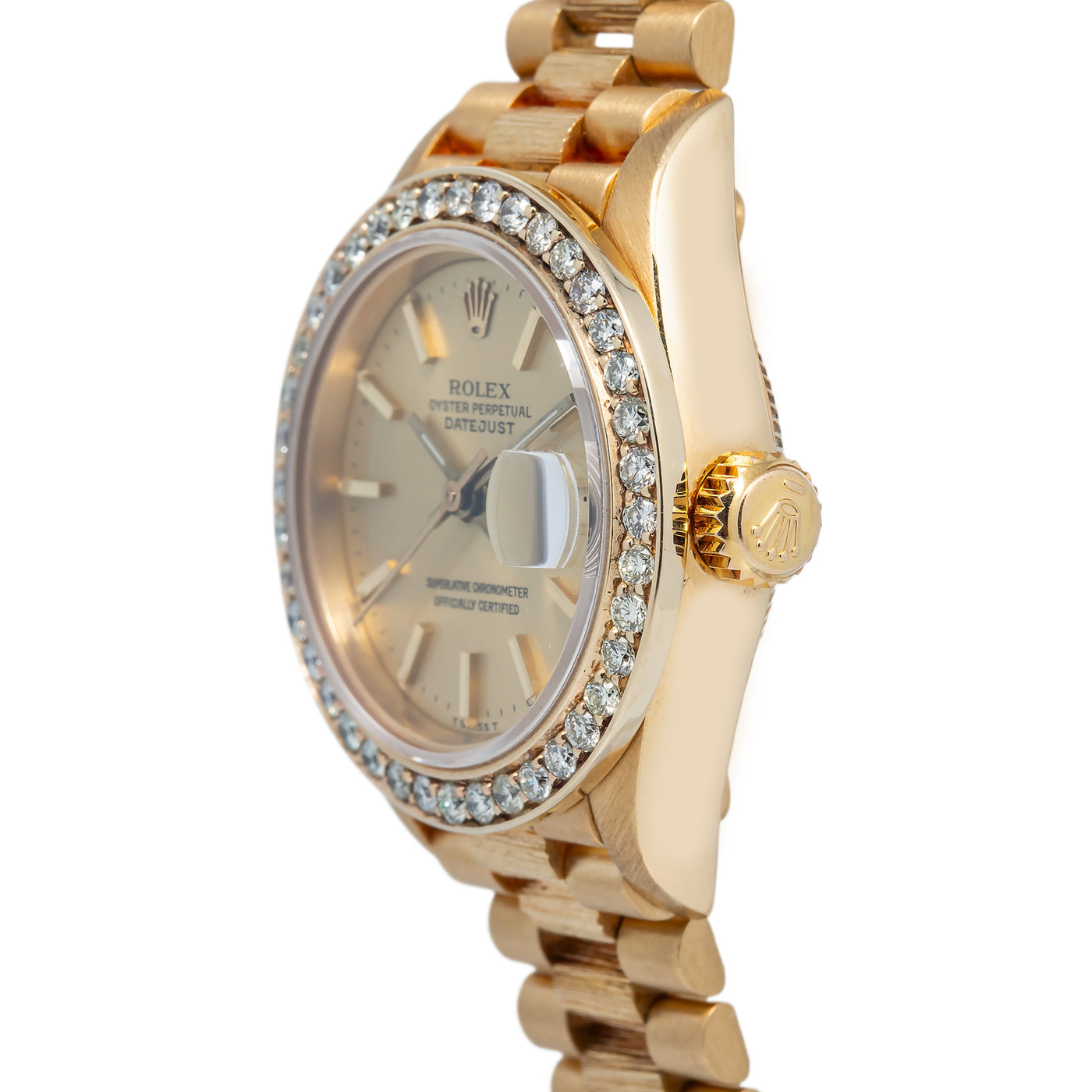 Rolex Datejust President Bark 69278 Diamond Bezel Champagne Dial Ladies 26mm Sale