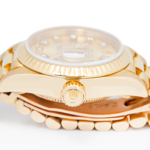 Rolex Datejust 69178 18k YG Auto President Factory Diamond Champagne Dial Ladies