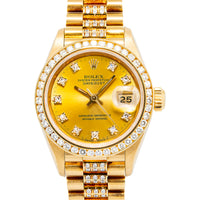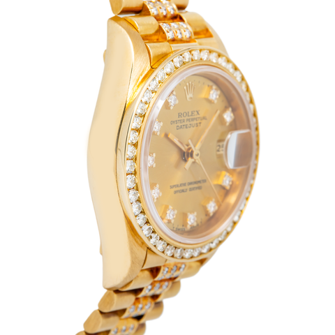 Rolex Datejust 69178 18k Yellow Gold President Diamond Champagne Dial Watch 26mm Sale