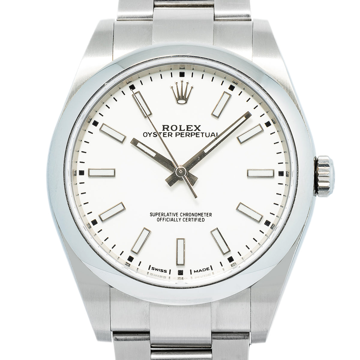 Rolex Oyster Perpetual 114300 Auto SS White Dial 2019 Card Men's Watch 39mm Sale
