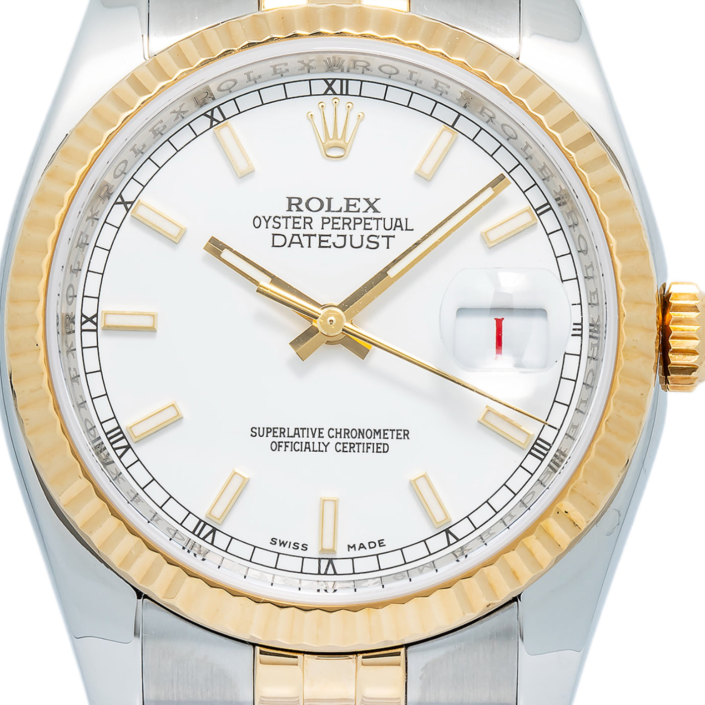 Rolex Datejust 116233 Jubilee Auto 18k YG Two Tone White Dial Men's Watch 36mm Sale