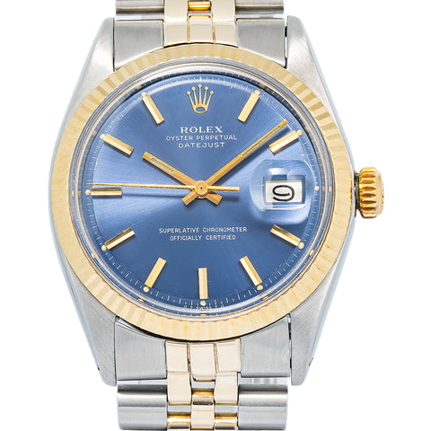 Rolex Datejust 16013 18k YG Two Tone Blue Sunburst Dial Auto Unisex Watch 36mm Sale