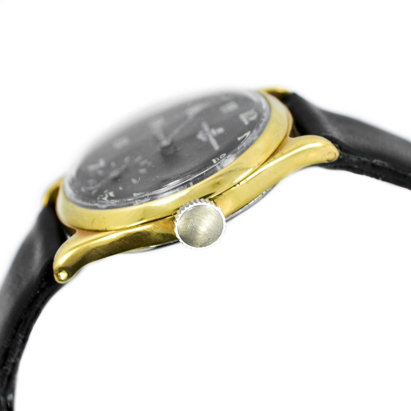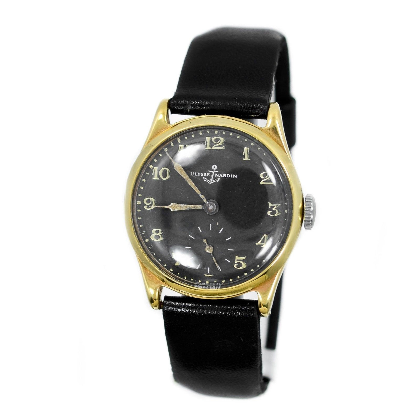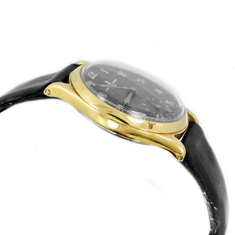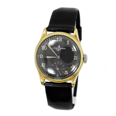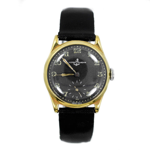 ULYSSE NARDIN VINTAGE 14K GOLD PLATED BLACK DIAL LEATHER MENS WATCH 40MM