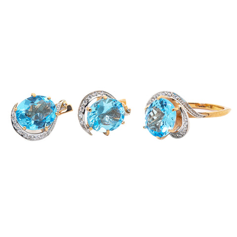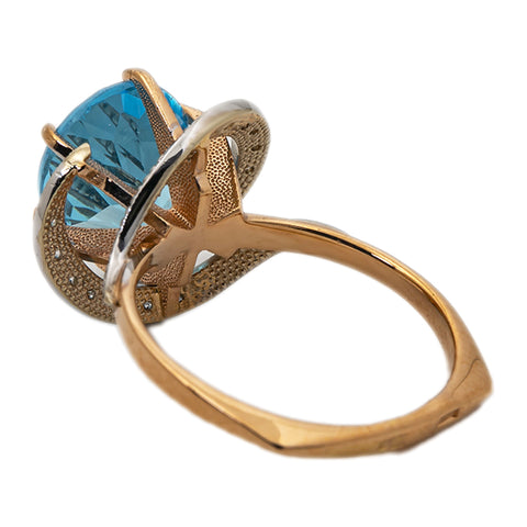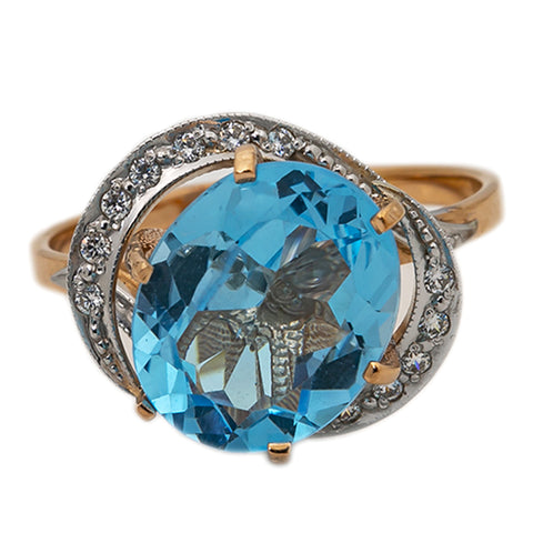 14K Yellow Gold with Blue Topaz and Diamond Ring 4.7 Grams Size 7.25