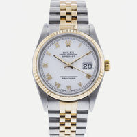 Rolex Datejust 16233 White Roman Dial Two Tone Jubliee Band