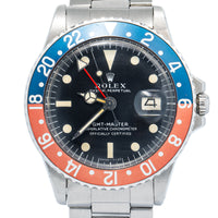 Rolex GMT Master 1675 1970 MINT PEPSI Fat Font Red Back Insert Auto Men's 40mm