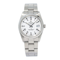Rolex Oyster Perpetual Date 15000 Steel Roman White Dial Watch 34mm 1993 Papers