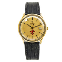 Omega Date Vintage Quartz Yellow Gold Plated Steel Case Back Men's Watch 35mm