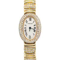 Cartier Baignoire 1960 Quartz 18k YG Diamond Bezel White Dial Women's Watch 18mm