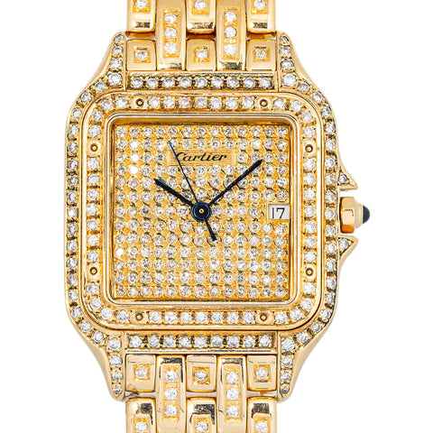 Cartier Panthere Aftermarket Diamond Setting 18k YG Quartz Women's Watch 29MM