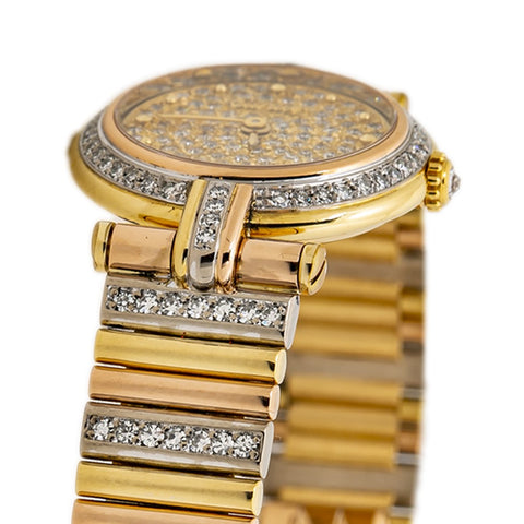Cartier Vendome Factory Diamond Tricolor Quartz Lady Round Watch 21mm