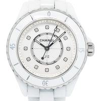 Chanel J12 H5703 Quartz White Ceramic Factory Diamond Dial Ladies Watch 33mm