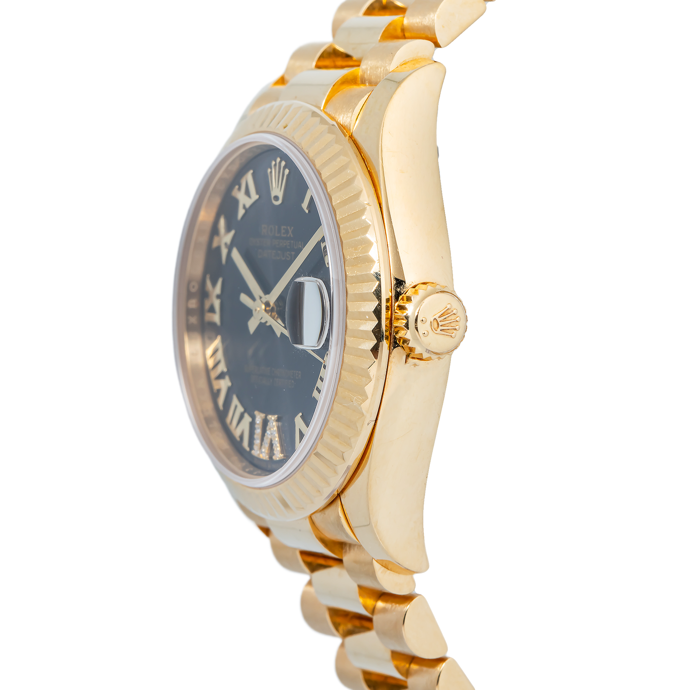 | BEZEL DIAMETER : 29mm | BEZEL TYPE : Fluted Bezel | BEZEL COLOR : Yellow Gold |