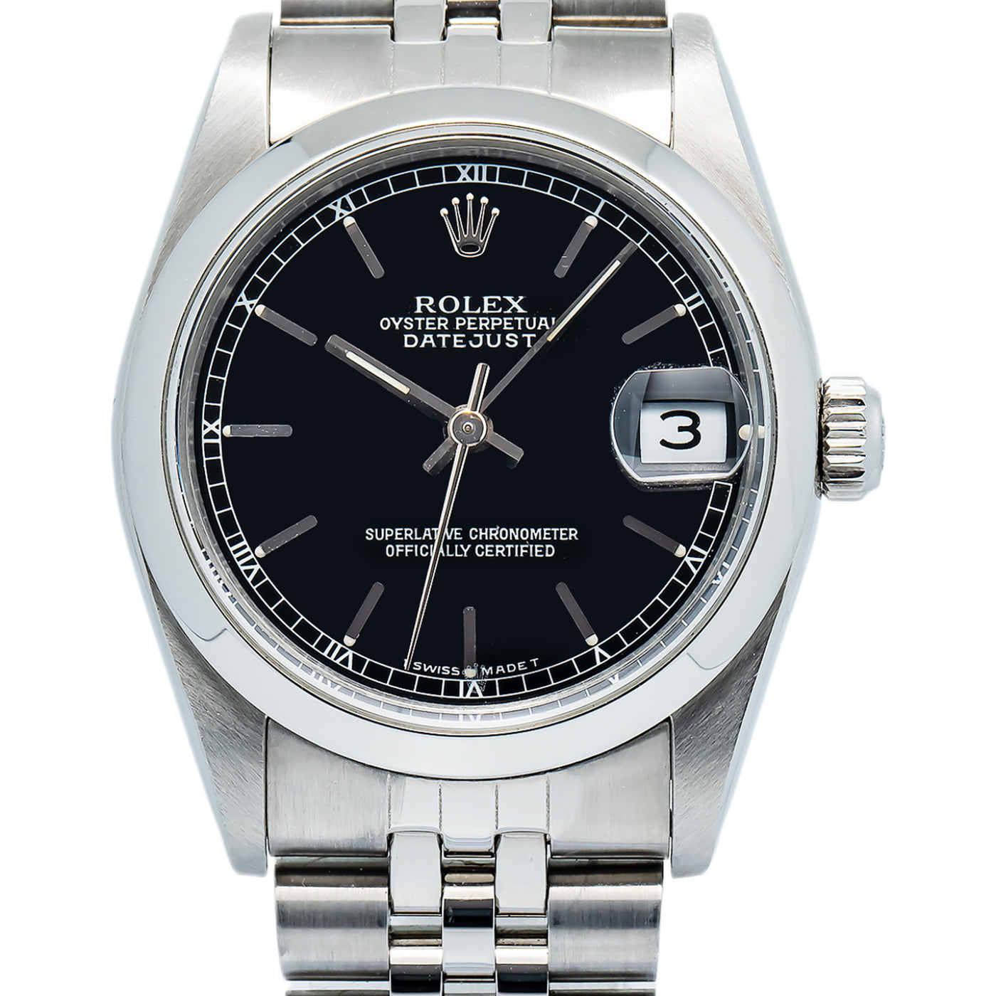 Rolex Datejust 68240 1993 Paper Midsize SS Jubilee Black Dial Auto Women's 31mm Sale