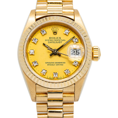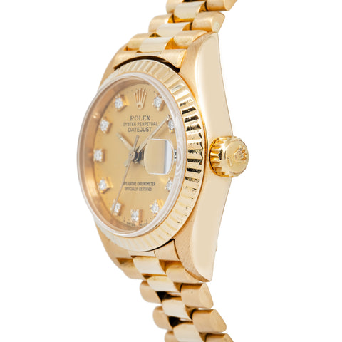 Rolex Datejust 69178 President 18k YG Champagne Dial Women Watch 26mm Sale
