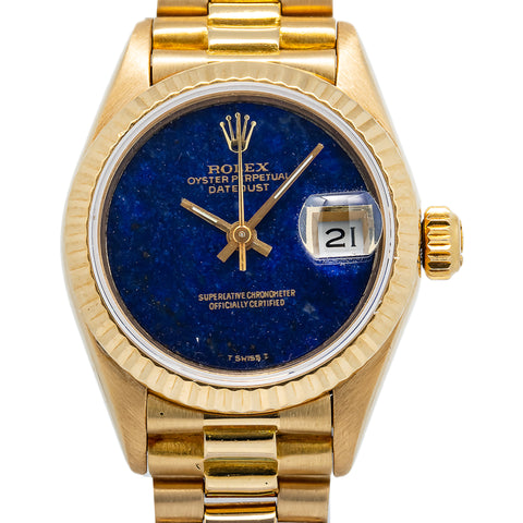 Rolex Datejust 69178 18k YG President Blue Lapis Dial Auto Ladies Watch 26mm Sale