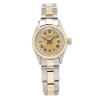 Rolex Oyster Perpetual 6411 18k YG Two Tone Auto Champagne Dial Ladies 25mm