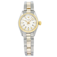 Rolex Oyster Perpetual 6618 14K YG TwoTone Off-White Dial Auto Ladies Watch 24mm Sale