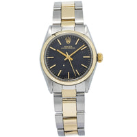 Rolex Oyster Perpetual 6748 18k YG Two Tone Black Dial Auto Womens Watch 31mm