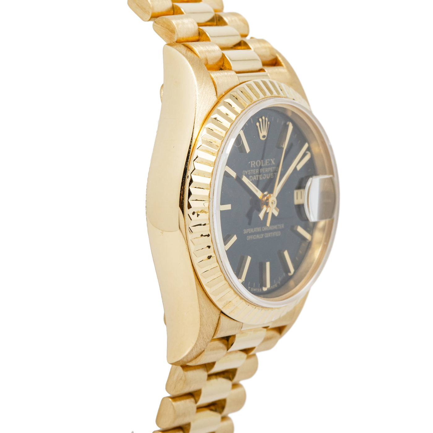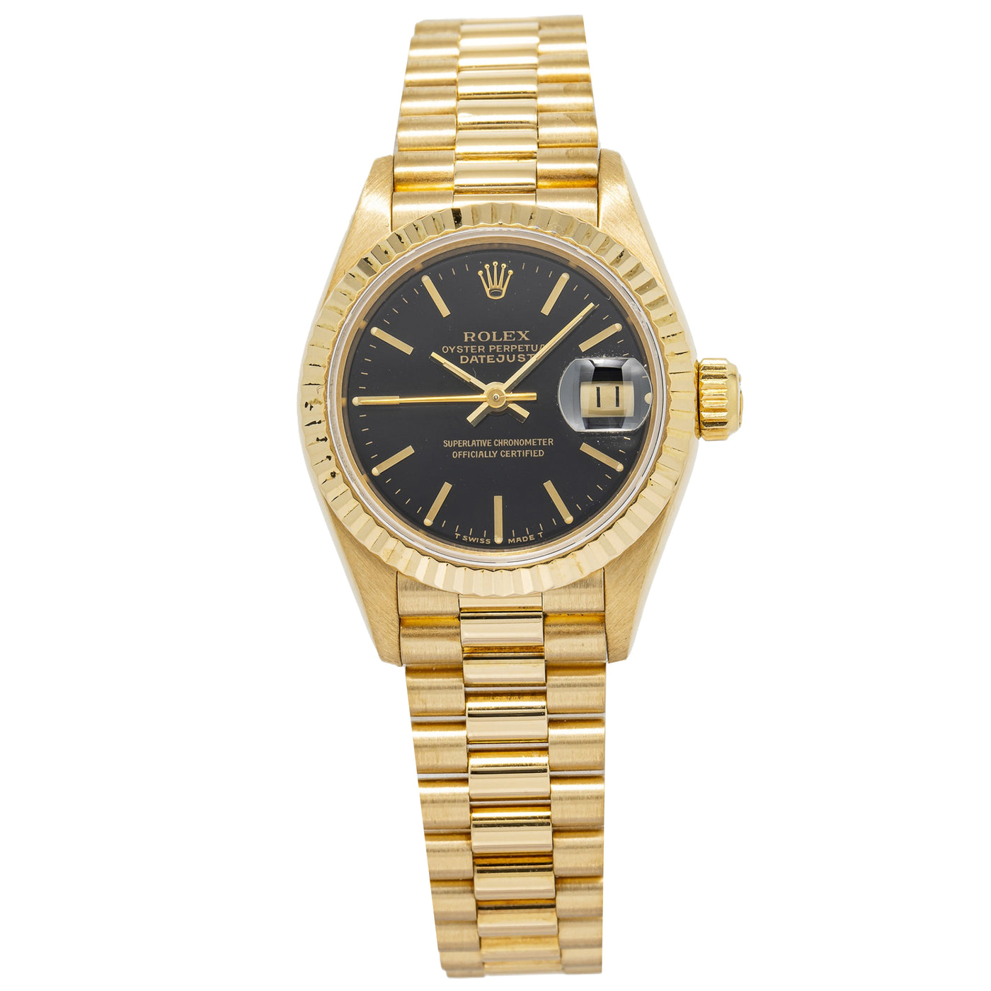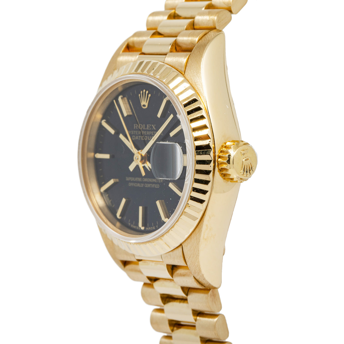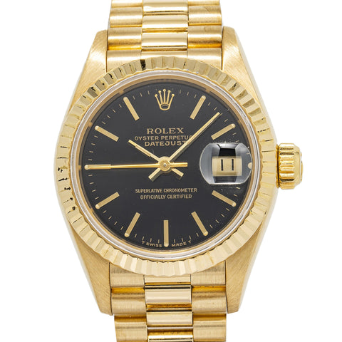 Rolex DateJust 69178 18K Yellow Gold President Black Dial Auto Ladies Watch 26mm Sale