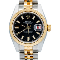 Rolex DateJust 179173 Jubilee 18k TwoTone Fluted Black Dial Women's Watch 26mm