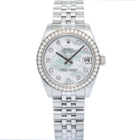 Rolex DateJust 178384 2014 Box/Card Diamond MOP Dial WG Bezel Women's Watch 31mm Sale