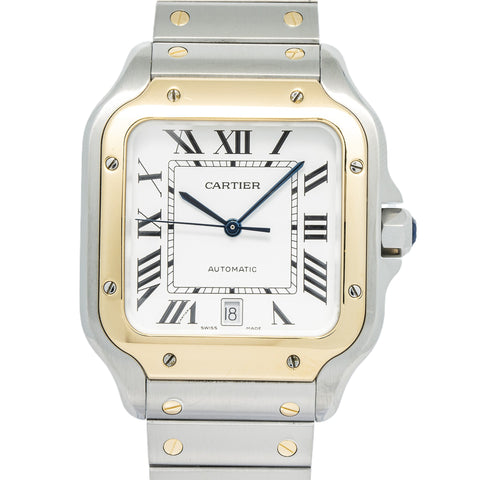 Cartier Santos 4072 W2SA0006 w/Card 18k YG Two Tone White Dial Auto Watch 40mm Sale