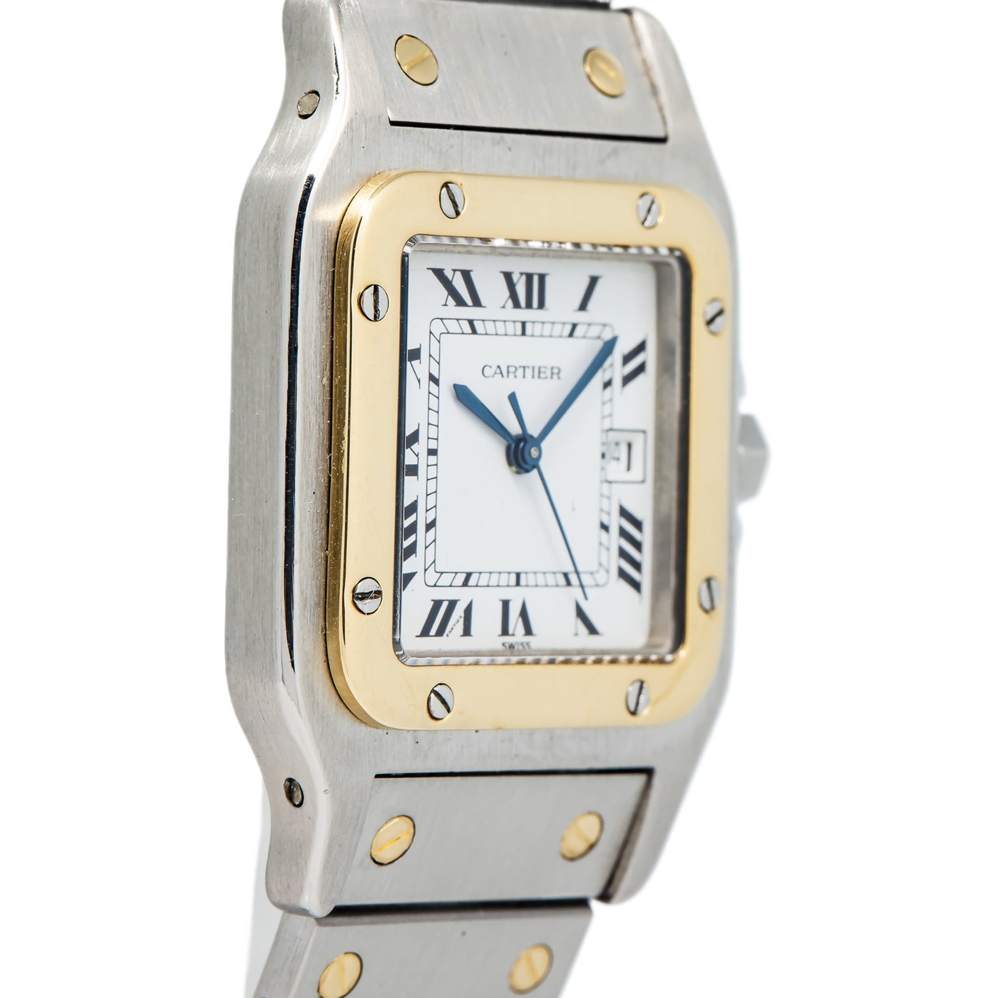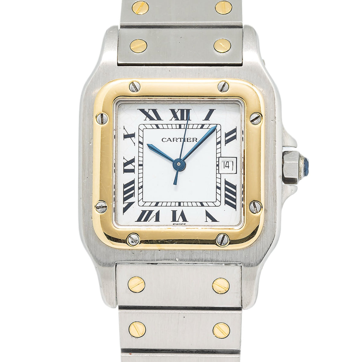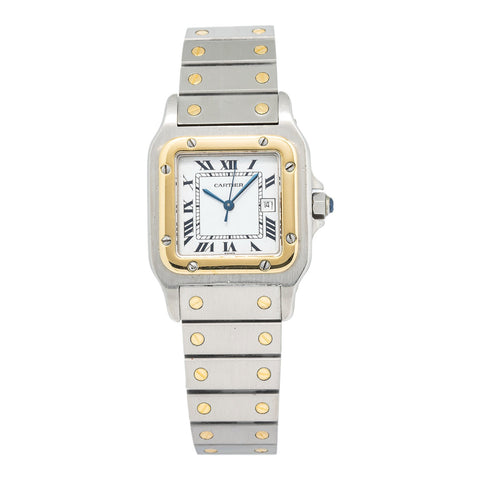 Cartier Santos Galbee 2961 18k YG Two Tone White Dial Auto Unisex Watch 29mm