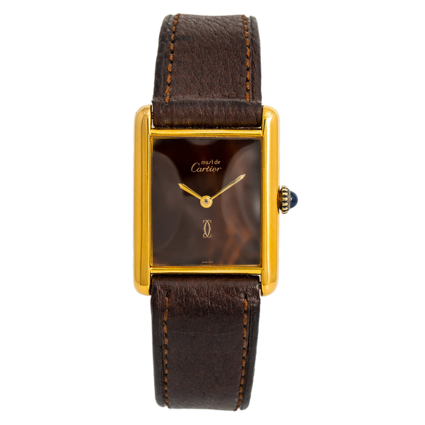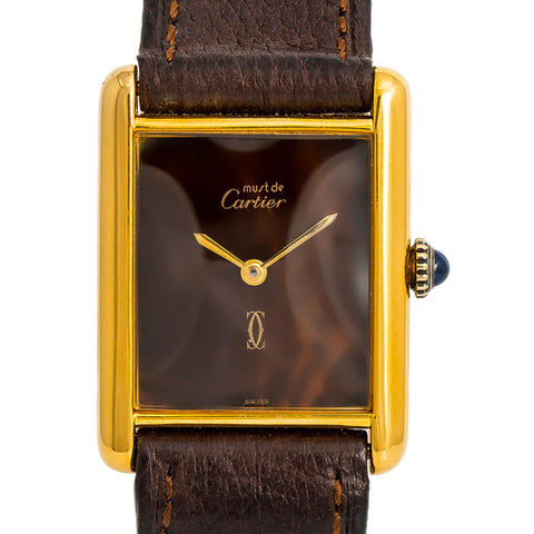 Cartier Tank Vermeil Vintage Unisex Hand Winding Watch Wood dial 23x23.5mm