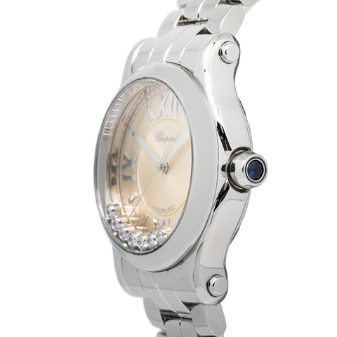 Chopard Happy Sport 8559 SS 7 Floating Diamonds Salmon Dial Auto Ladies 36mm Sale