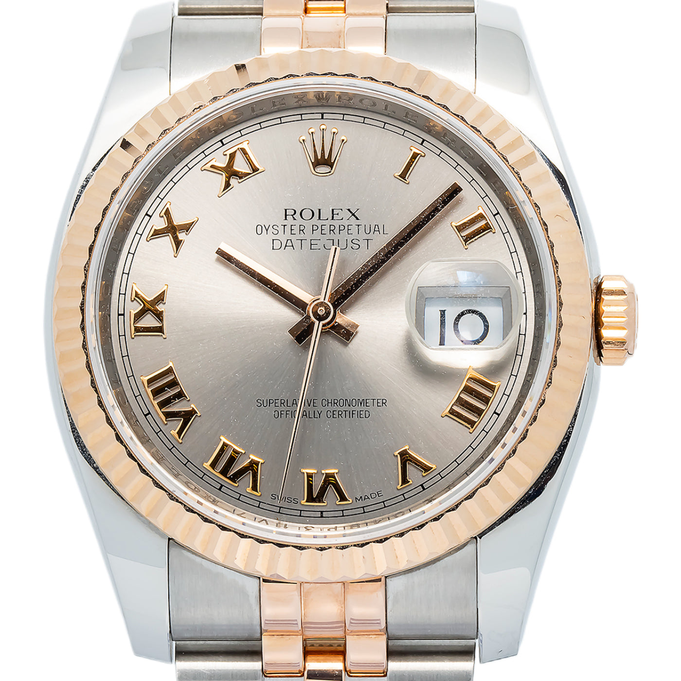 Rolex Datejust 116231 18k RG Two Tone Jubilee Rhodium Dial Automatic Unisex 36mm