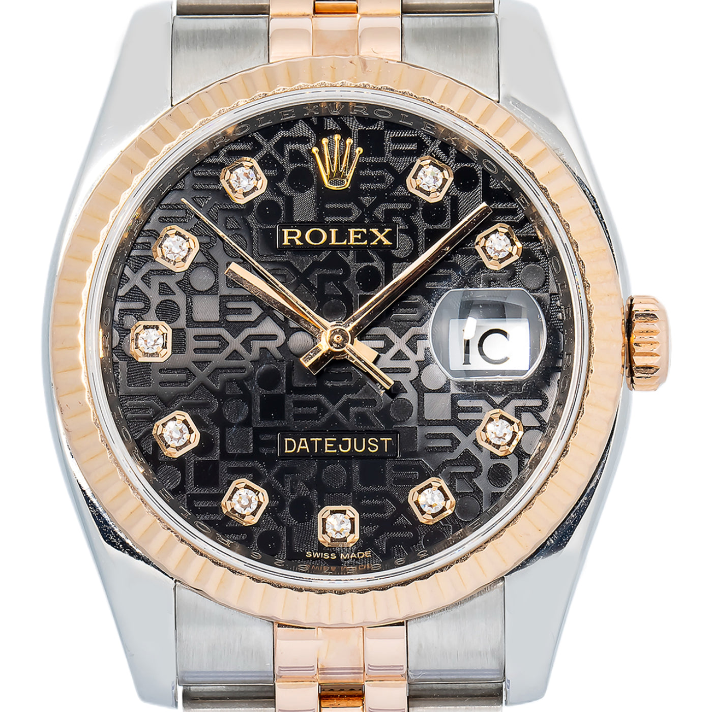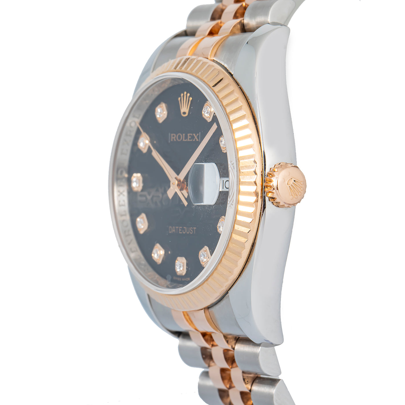Rolex Datejust 116231 18k Rose Gold Factory Black Diamond Dial Unisex Watch 36mm Sale