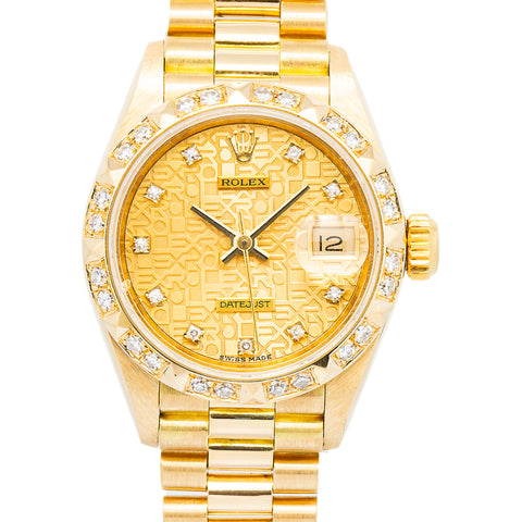 Rolex Datejust 69178 18k YG President Aftermarket Diamond Bezel Auto Watch 26mm Sale