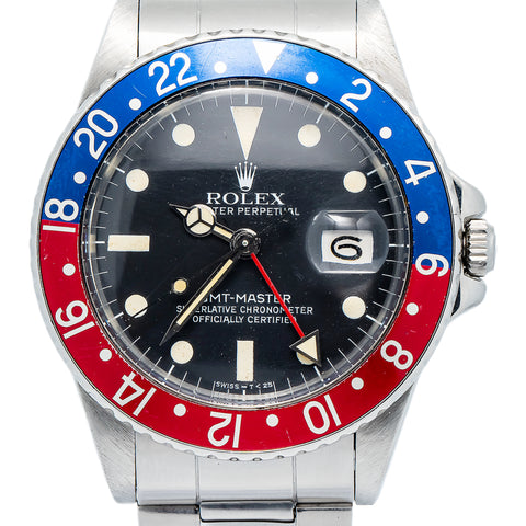Rolex GMT-Master 16750 Oyster Red Back Pepsi Insert Patina Dial Watch 40mm
