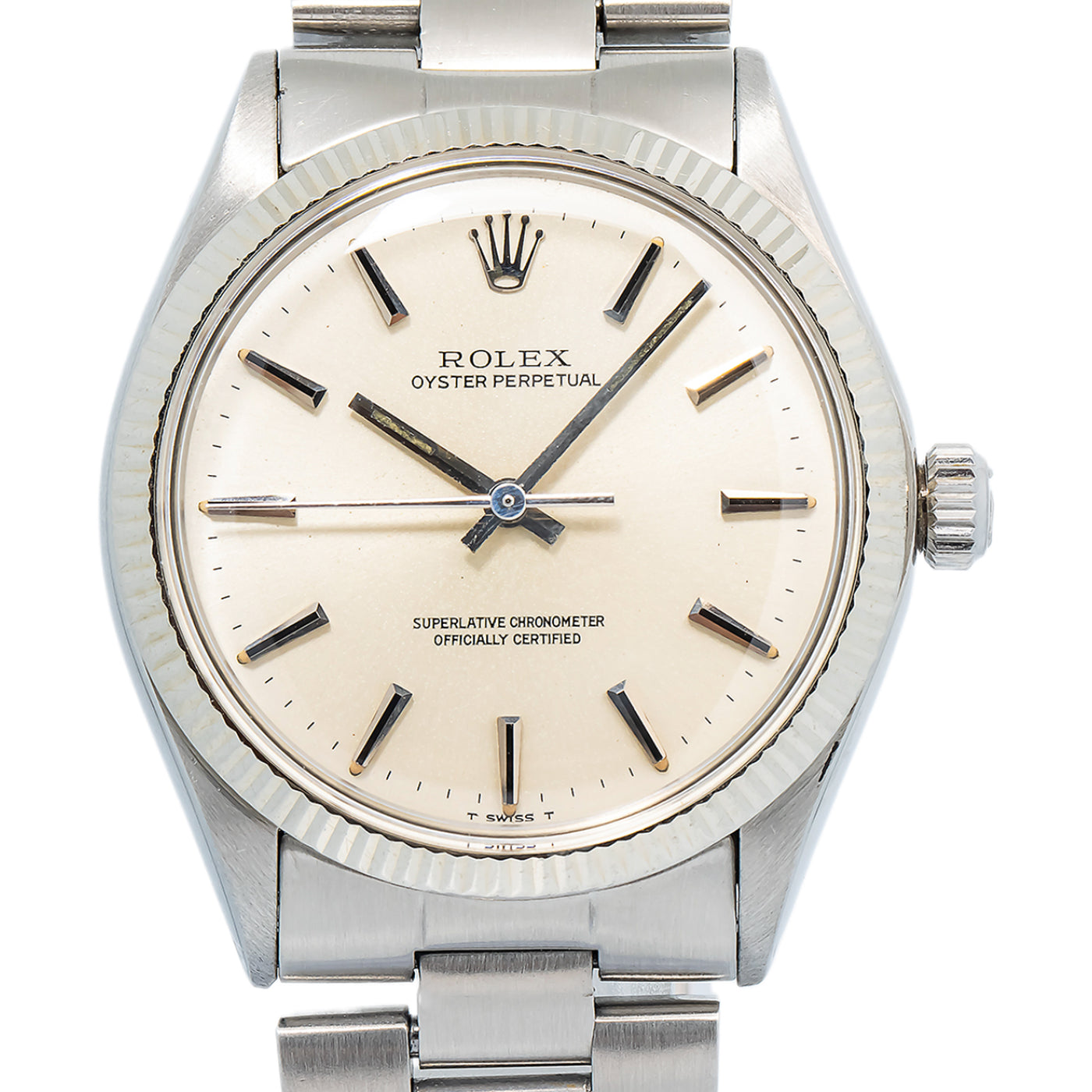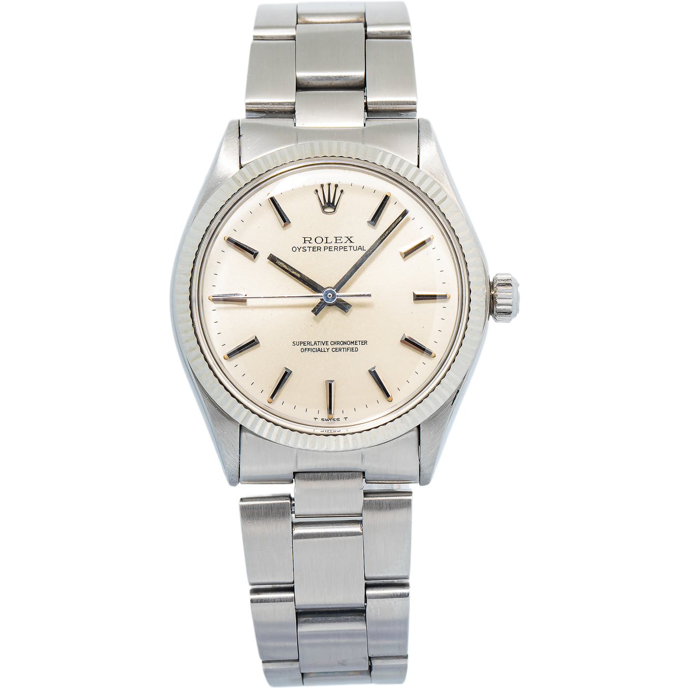 Rolex Oyster Perpetual 1005 Auto Stainless Steel Silver Dial Unisex Watch 34mm Sale