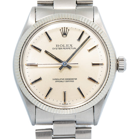 Rolex Oyster Perpetual 1005 Auto Stainless Steel Silver Dial Unisex Watch 34mm