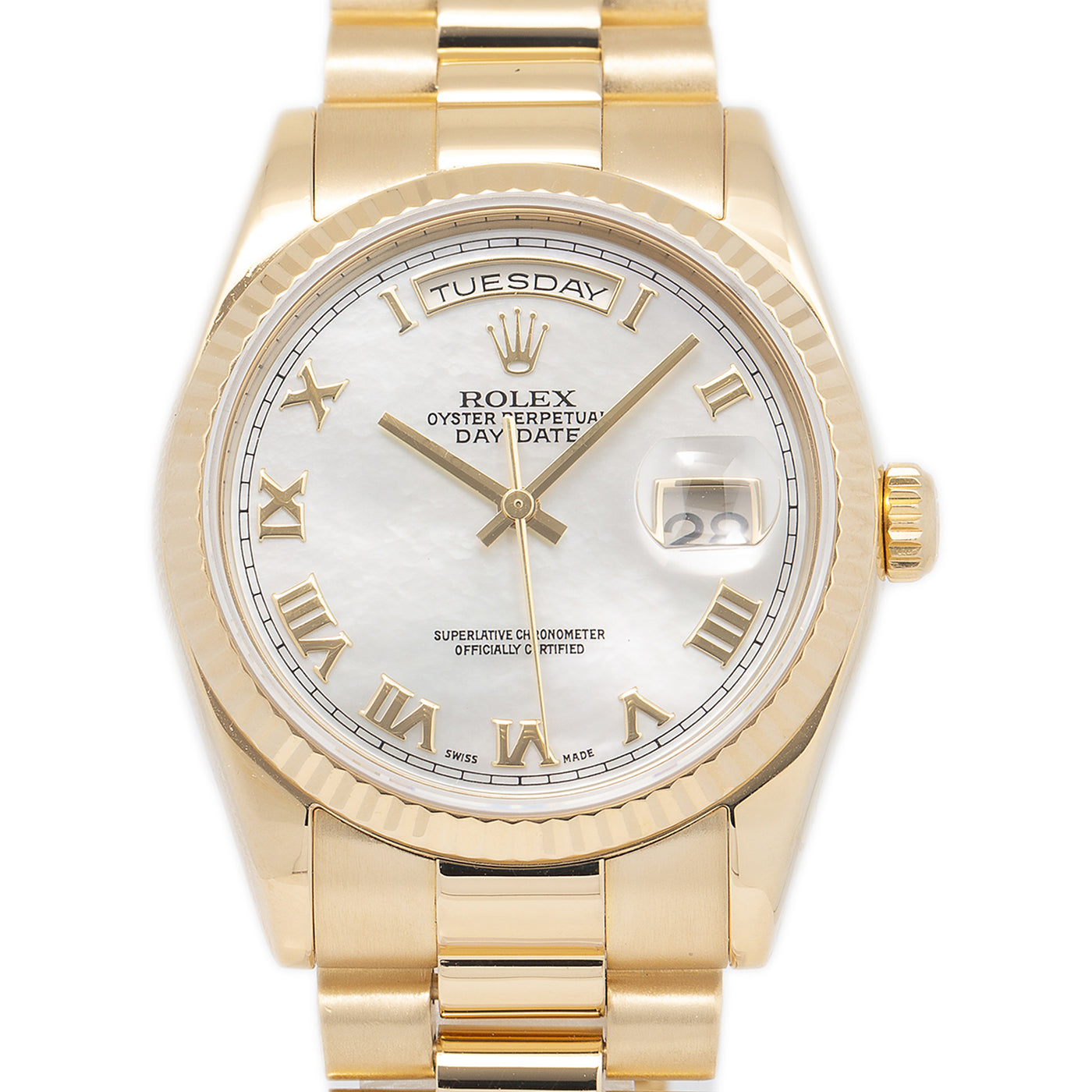 Rolex Day-Date 118238 18k Yellow Gold President MOP Automatic Men's Watch 36mm