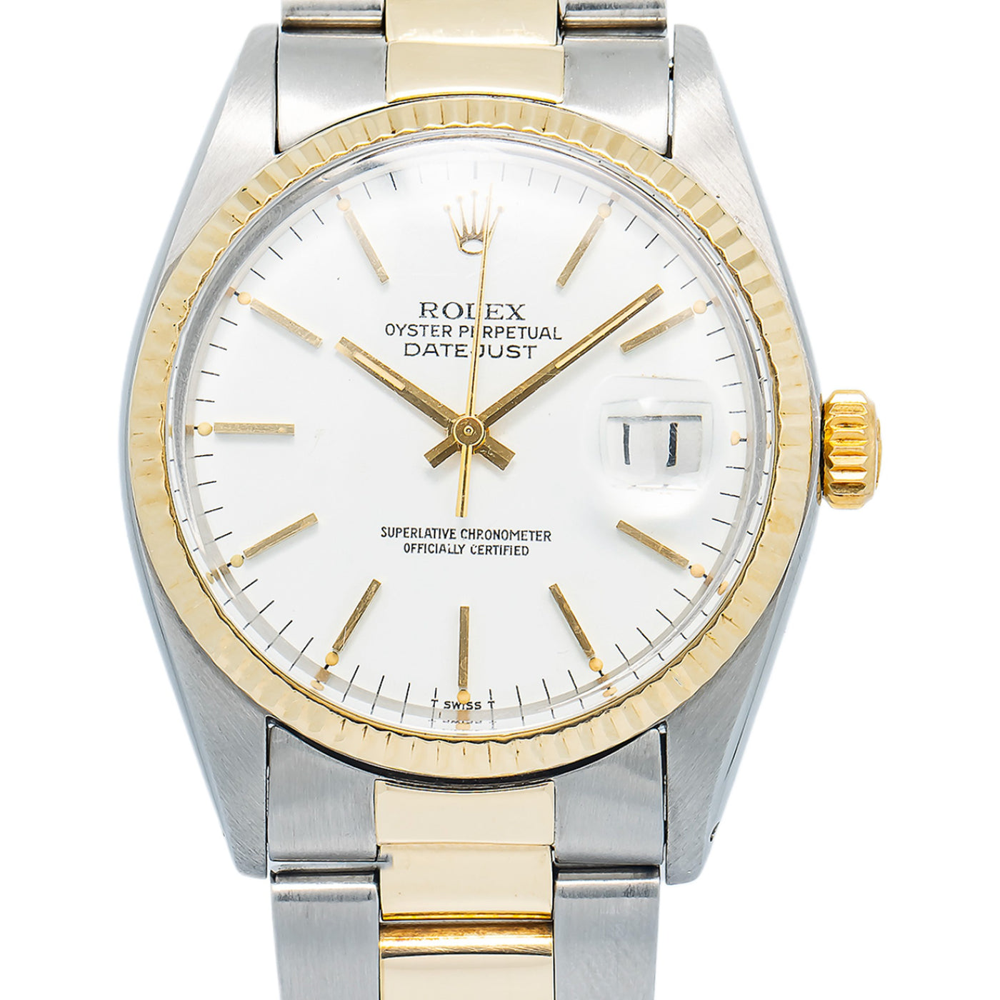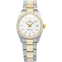 Rolex DateJust 16013 Oyster 18k YG Two Tone Matte White Dial Auto Unisex 36mm