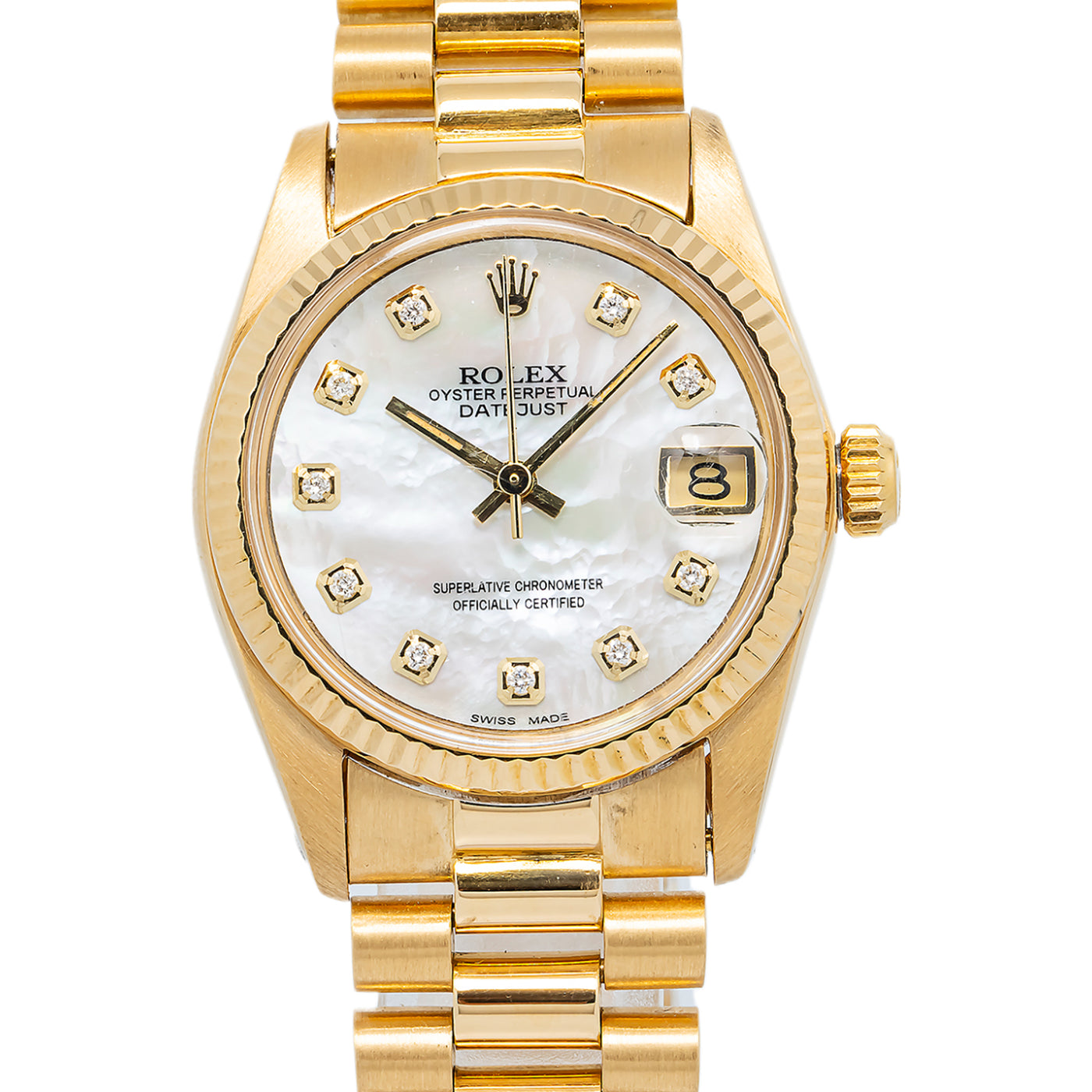 | BEZEL TYPE : fluted | BEZEL COLOR : Yellow Gold | DIAL COLOR : MOP |