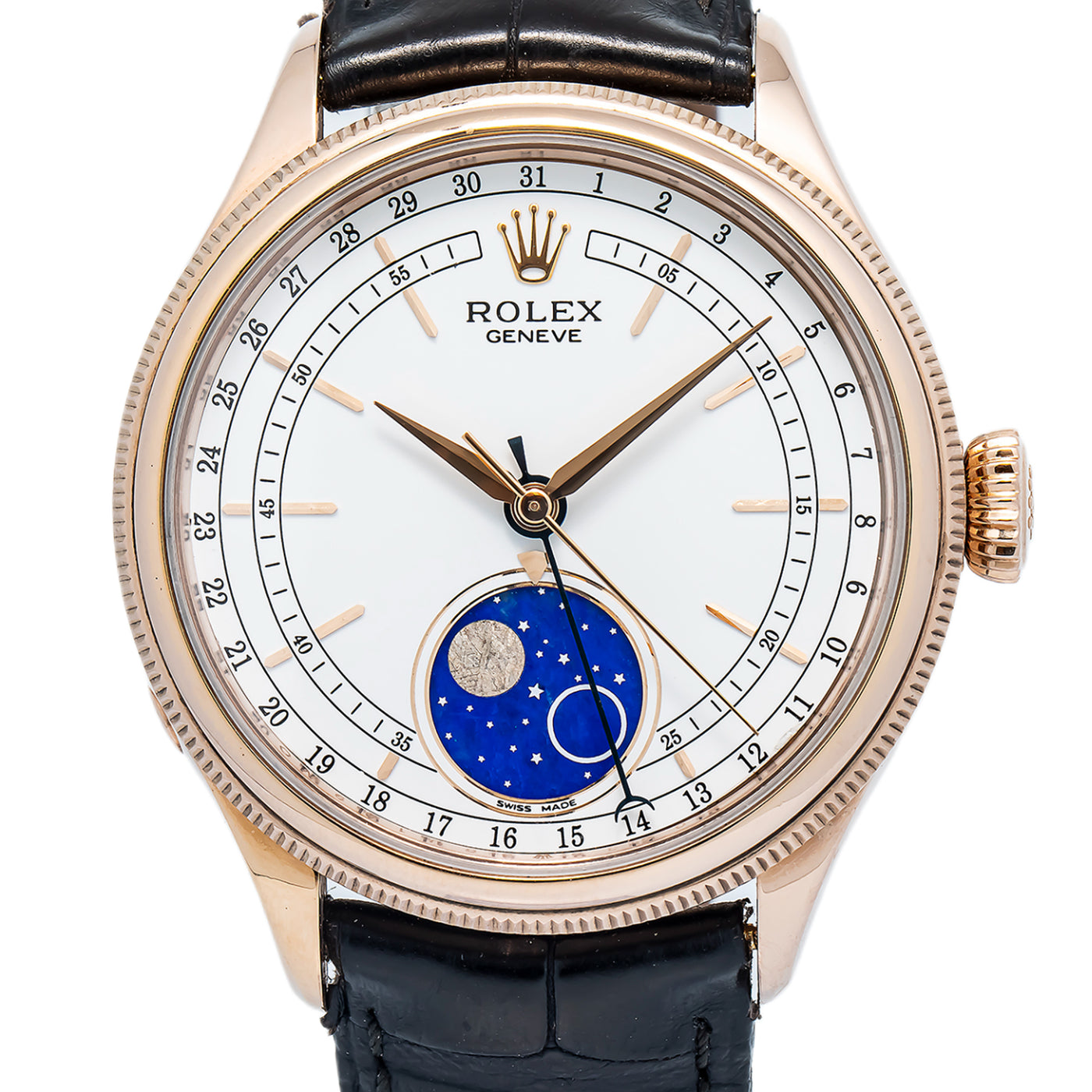 Rolex Cellini Moonphase 50535 18k RG 2023 Card White Dial Unisex Auto Watch 39mm